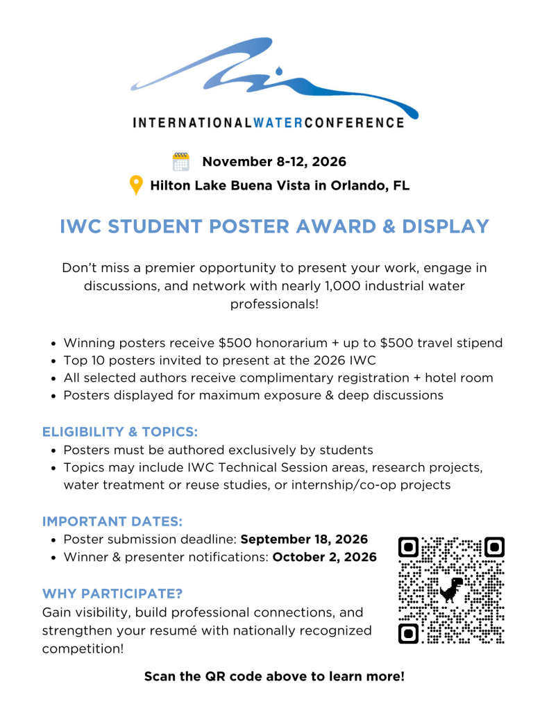 The International Water Conference® (IWC) student poster competition is open to college and university engineering students in the United States and worldwide.